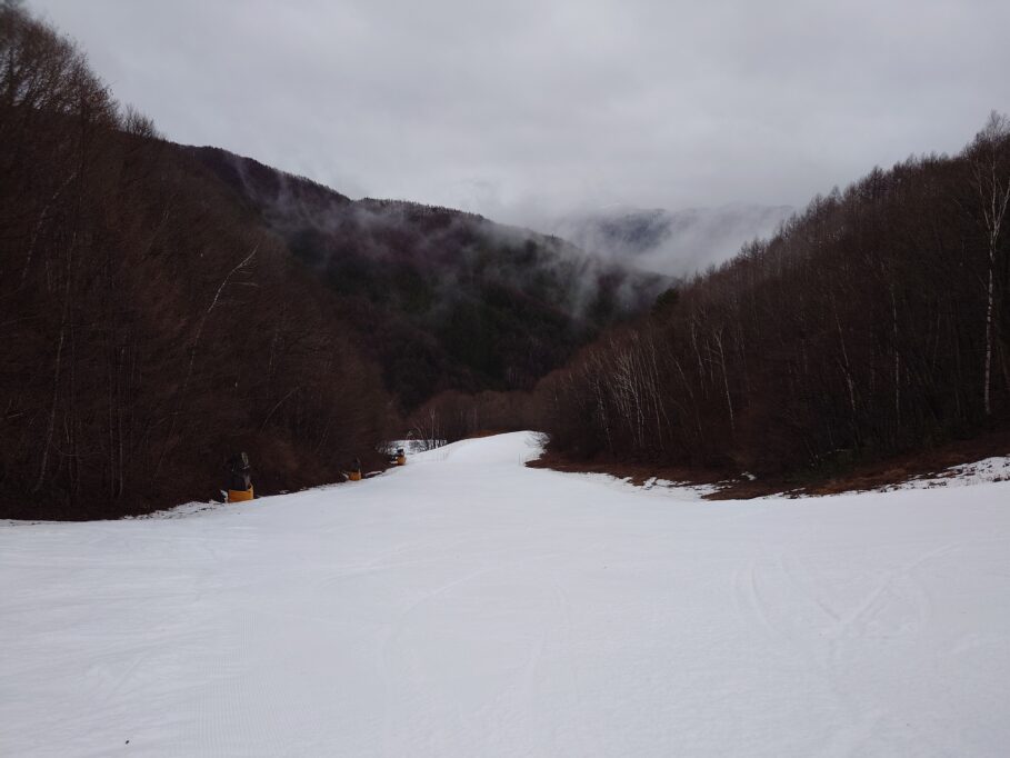中間部より下は雨ですがスキーがよく走ってご機嫌なバーンです。