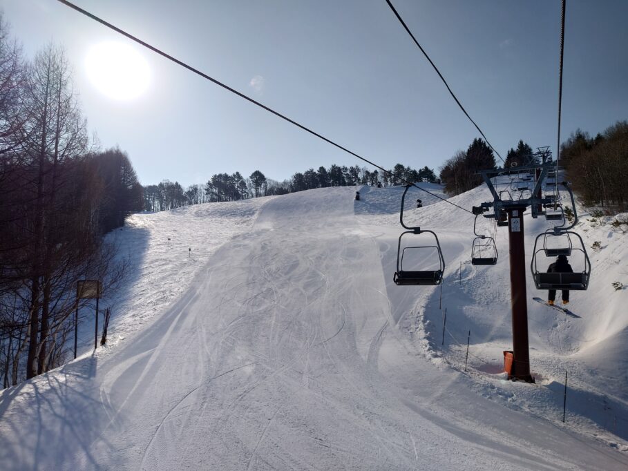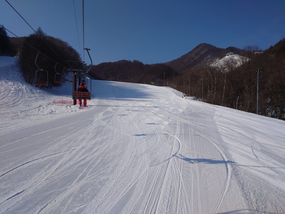 朝の早いタイミングだとリフトに乗って自分のラインをチェックできます。