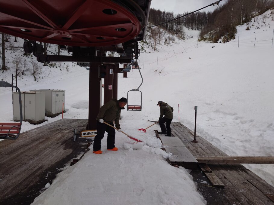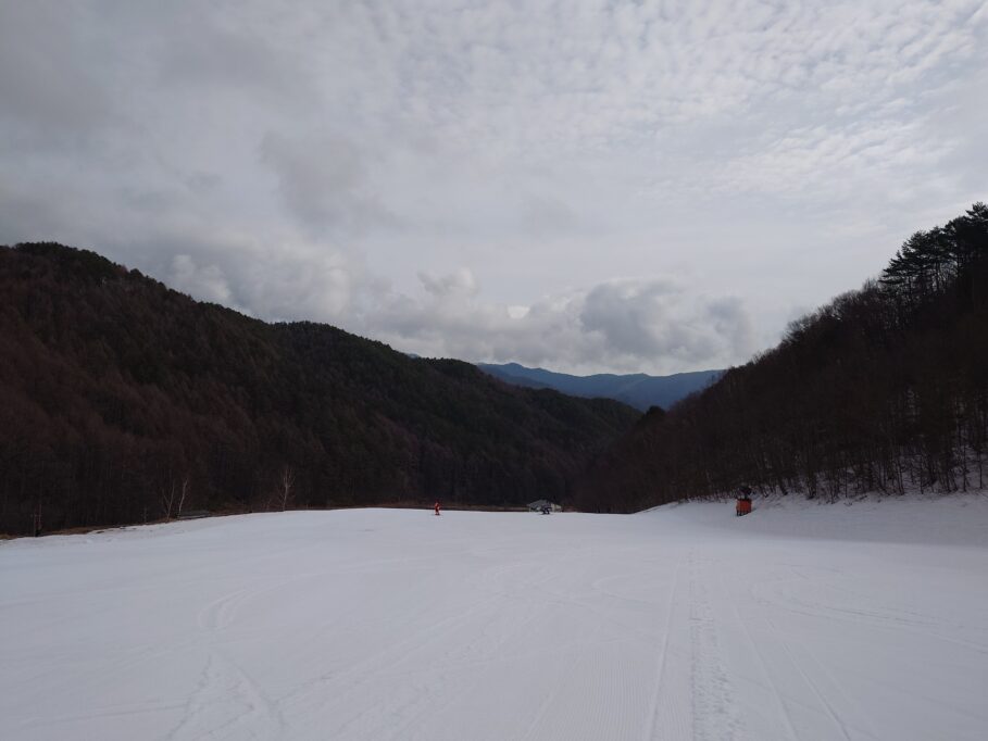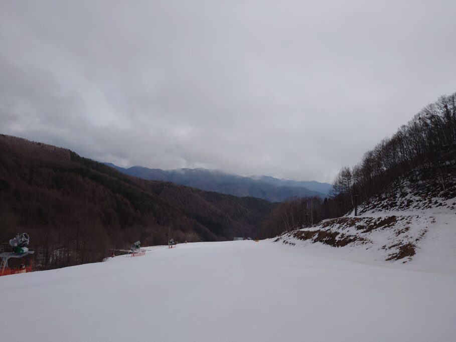 しかし、スノーマシンを配備しているコースは余裕です。圧雪車でいじる雪も豊富にあるので完璧にリペアできます。