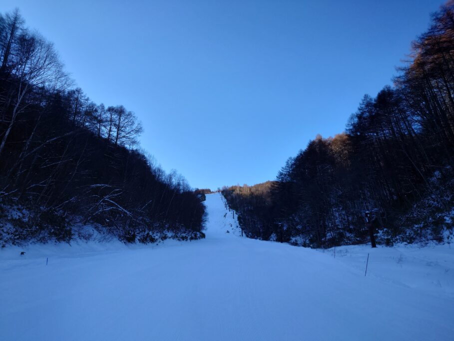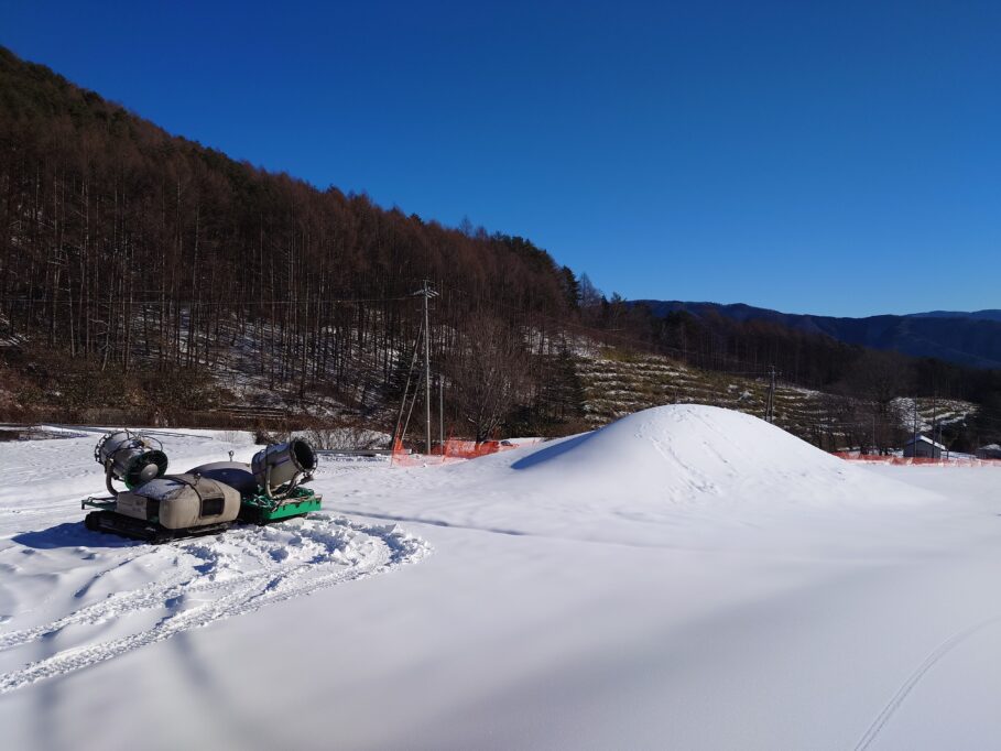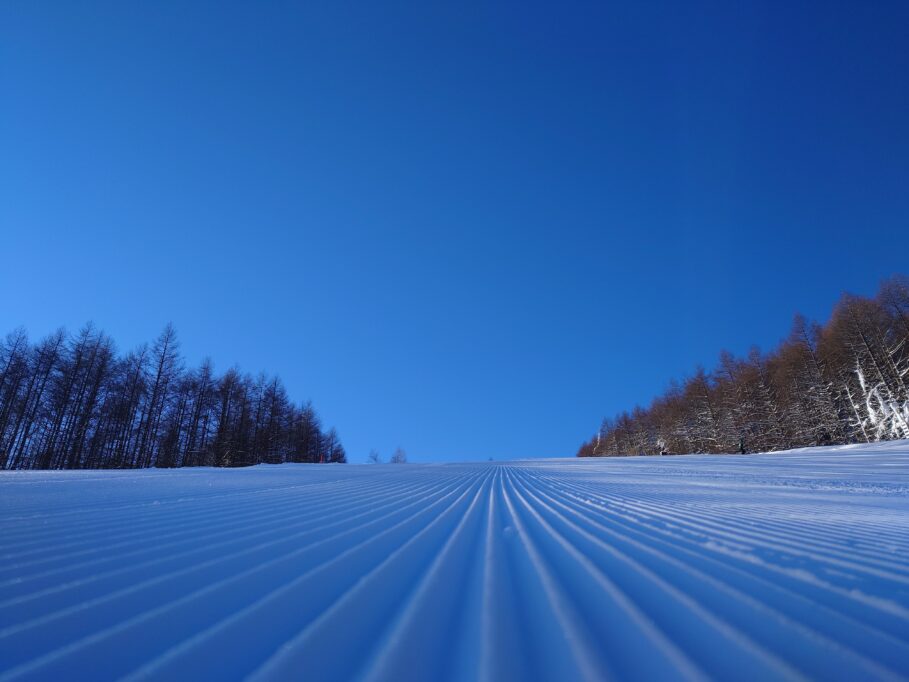 昨日の自然降雪、今季最高の冷えによるスノーメイキングでさらにコース幅広がりました。