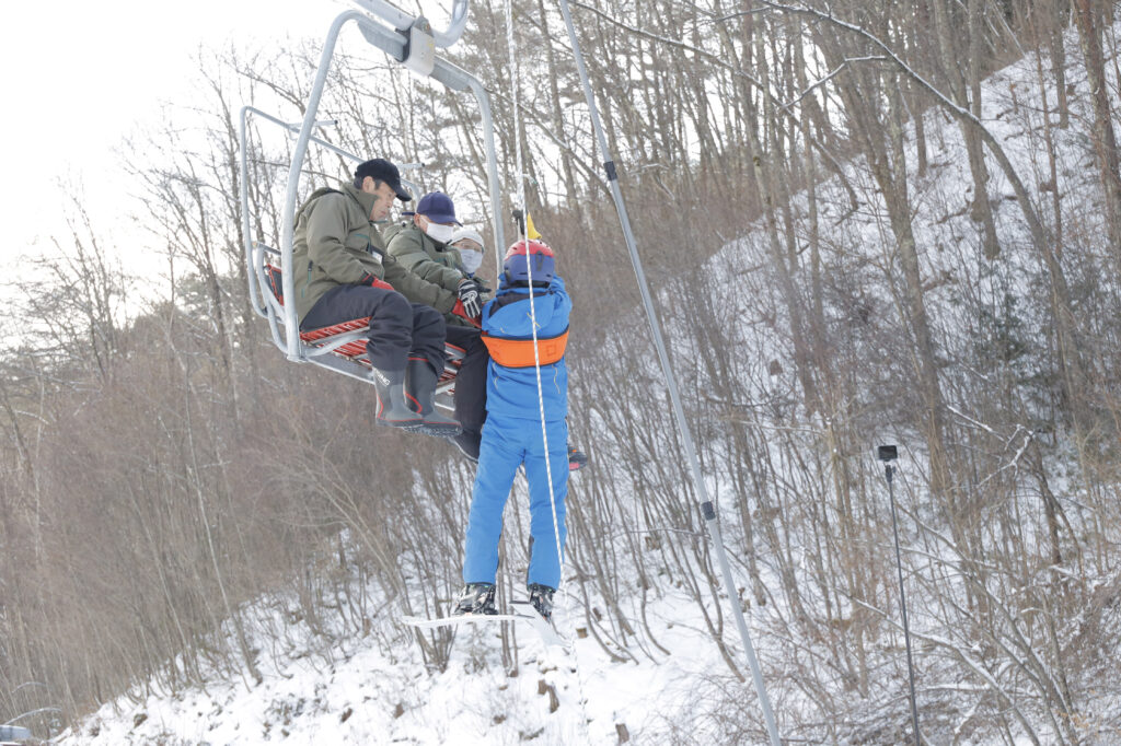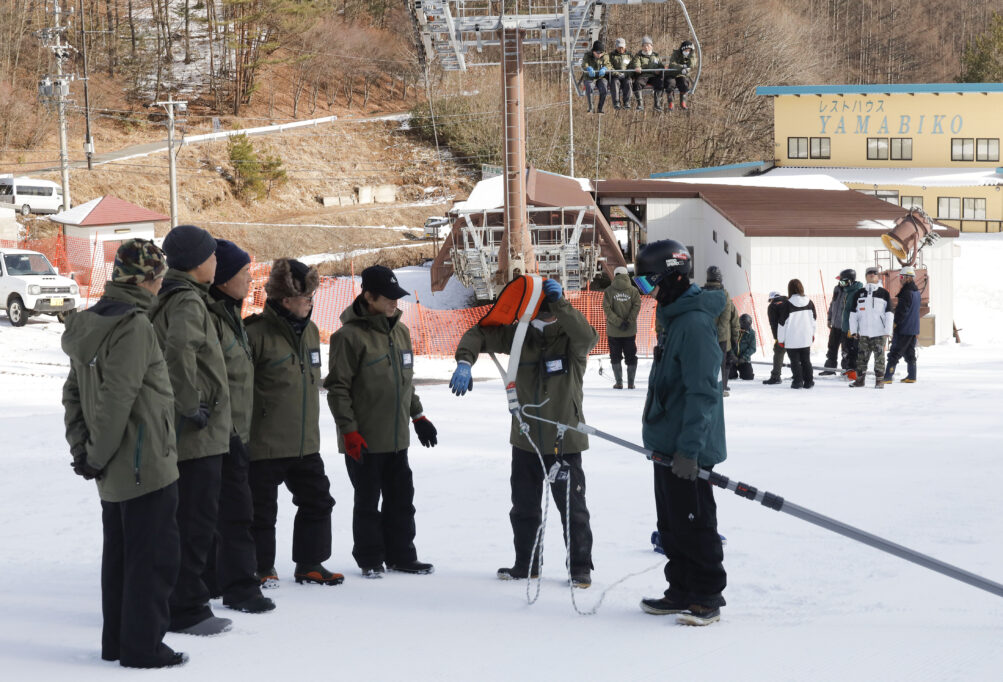 スキーを履いた状態でリフトから降ろす訓練も行いました