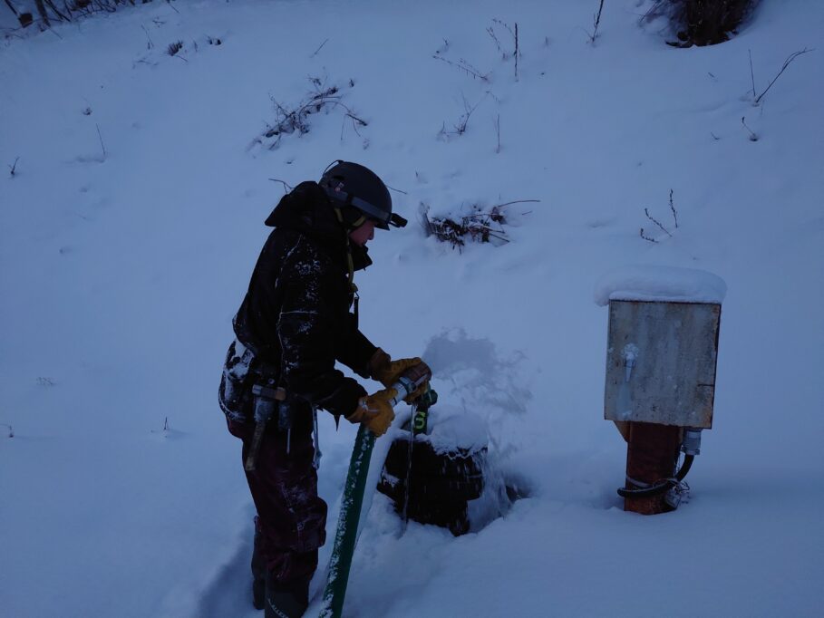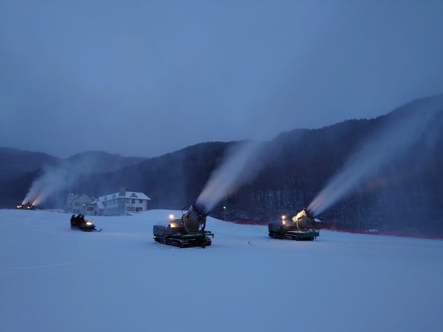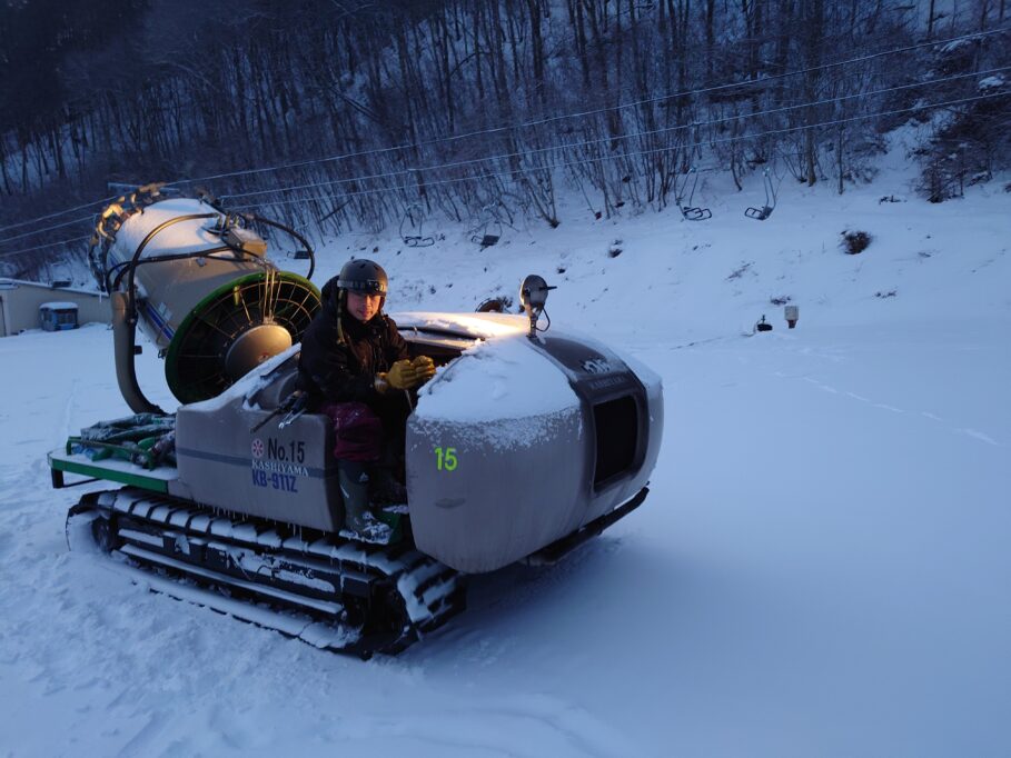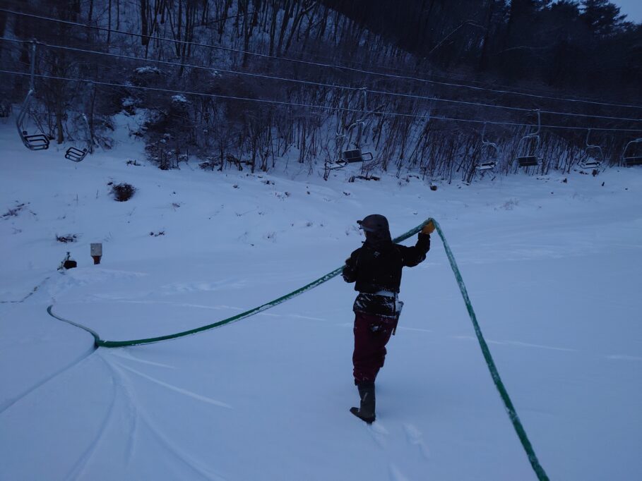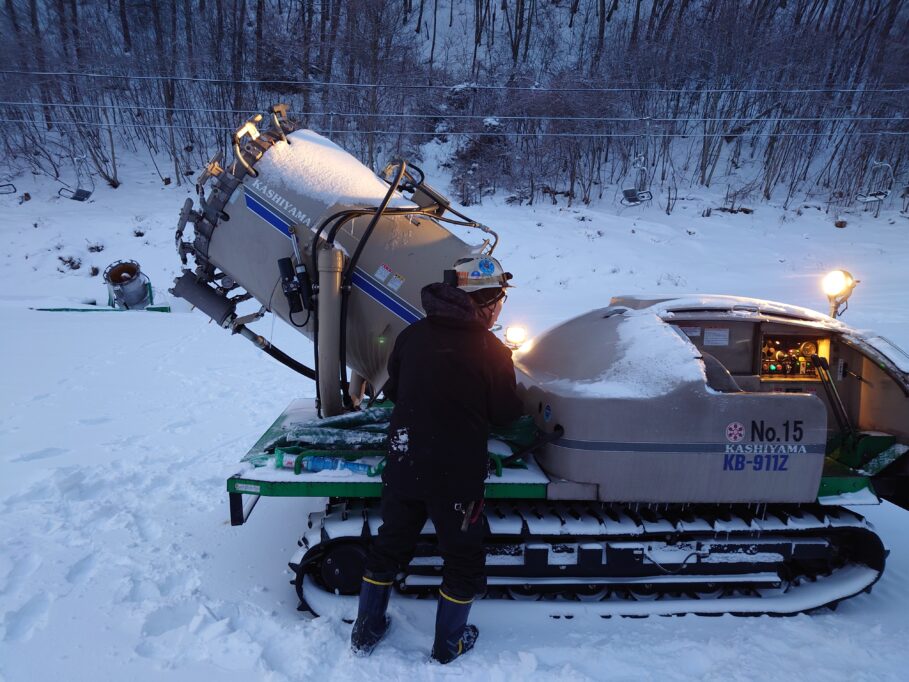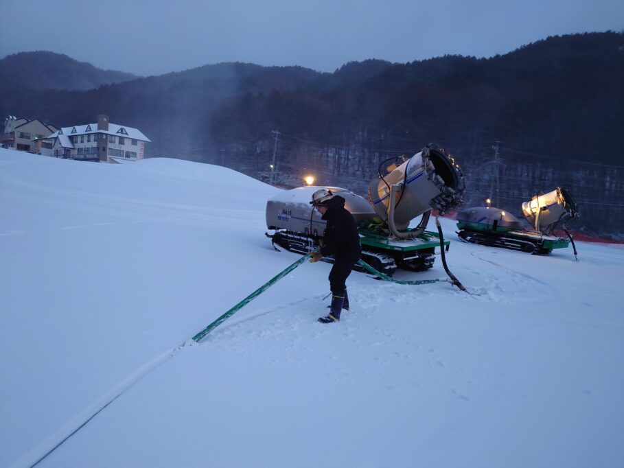 朝のスノーマシン撤収の様子。