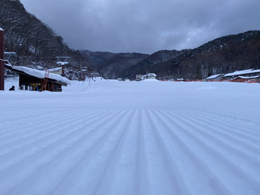 早朝の丸山ゲレンデ昨日の新雪5cmほど柔らかめな仕上がりです
