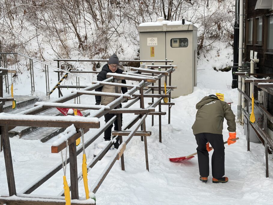 早朝から重たい雪かきに汗を流します皆さまのご来場をお待ちしています