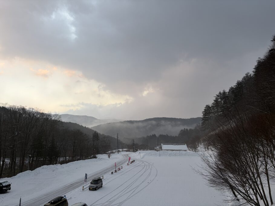 道路は湿雪により大変滑りやすくなっておりますお気をつけてお越し下さいませ