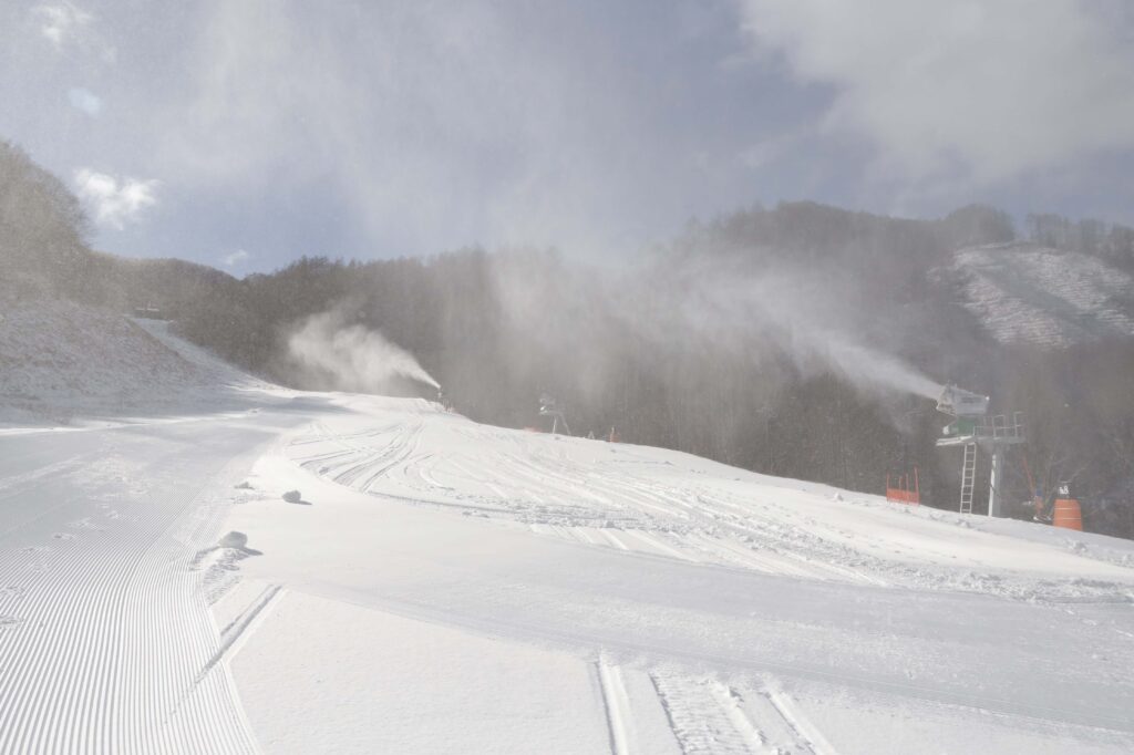 降雪チームの奮闘によりゲレンデが無事につながり、