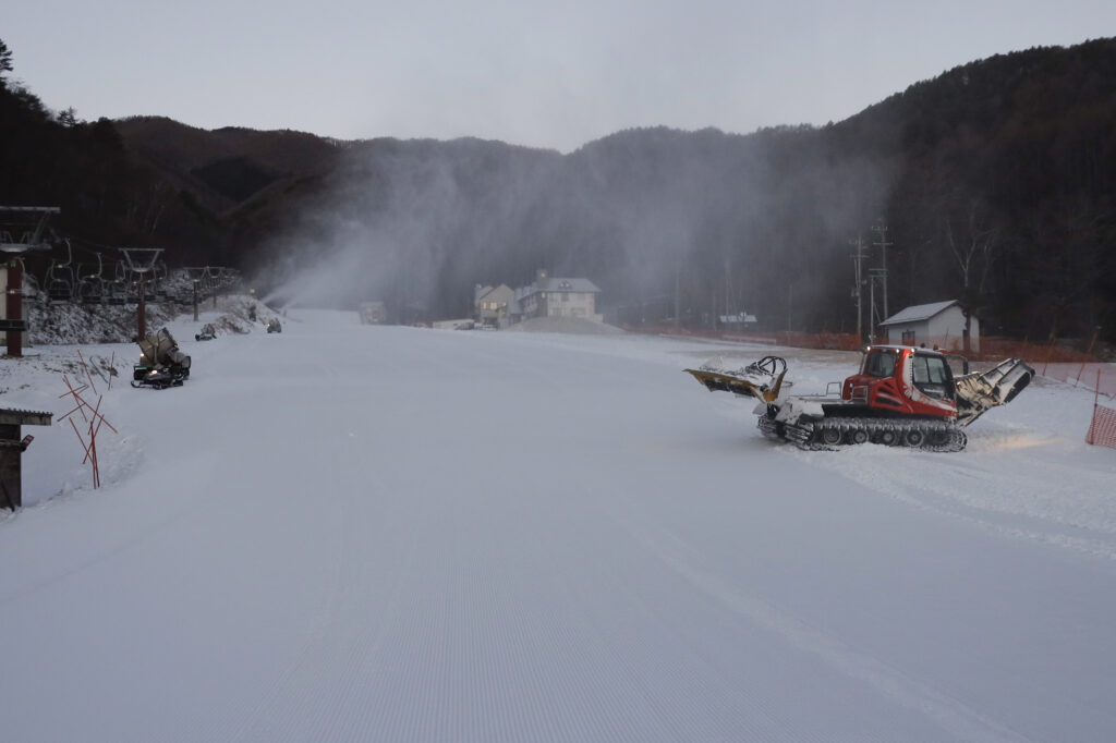 ゲレンデ周辺はスノーマシンの雪により圧雪状態の箇所もございます